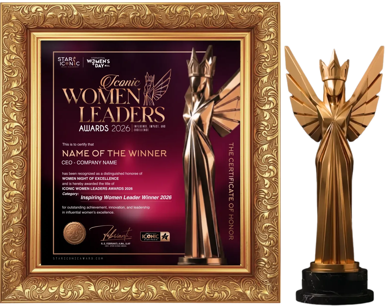 Dalam momentum International Women’s Day 2026, Star Iconic menghadirkan sebuah penghormatan eksklusif yang didedikasikan khusus bagi wanita berpengaruh, sebagai bentuk apresiasi, validasi, dan penguatan posisi kepemimpinan wanita di tingkat nasional maupun internasional.
